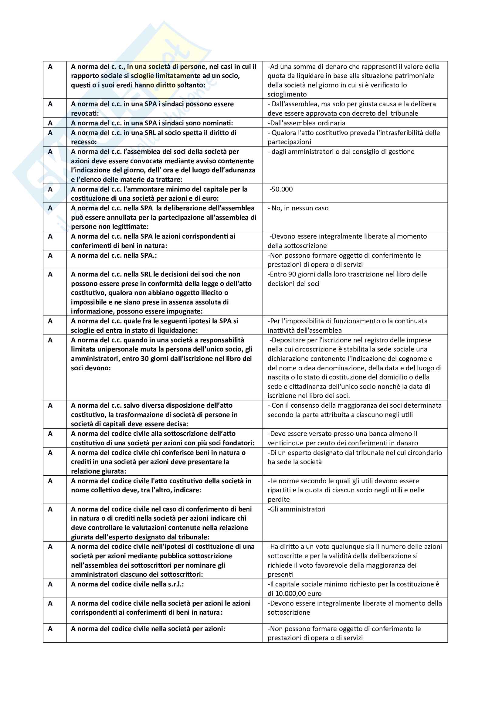 domande diritto commerciale esauriente selezione vedrai